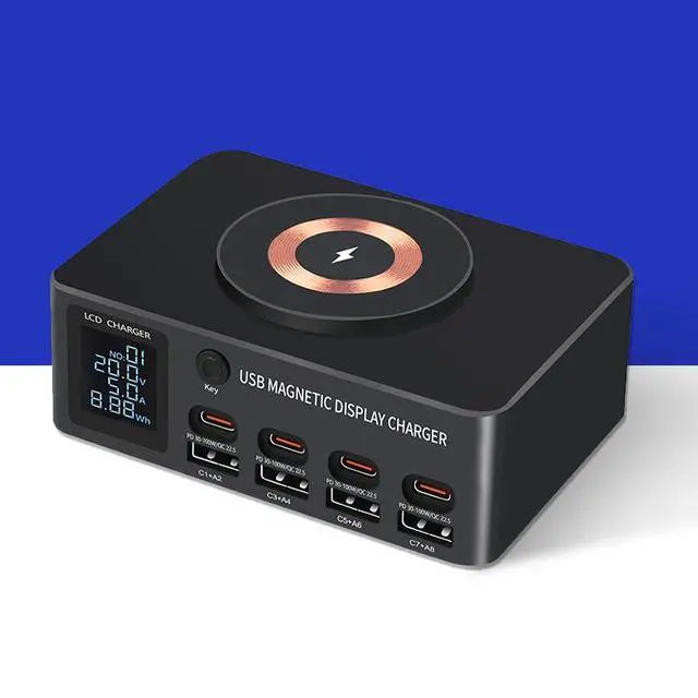 Smart Digital Display USB Charging Station 140W Desktop Charger Mobile Phone Laptop Magnetic Wireless Charge PD Fast Charger AU