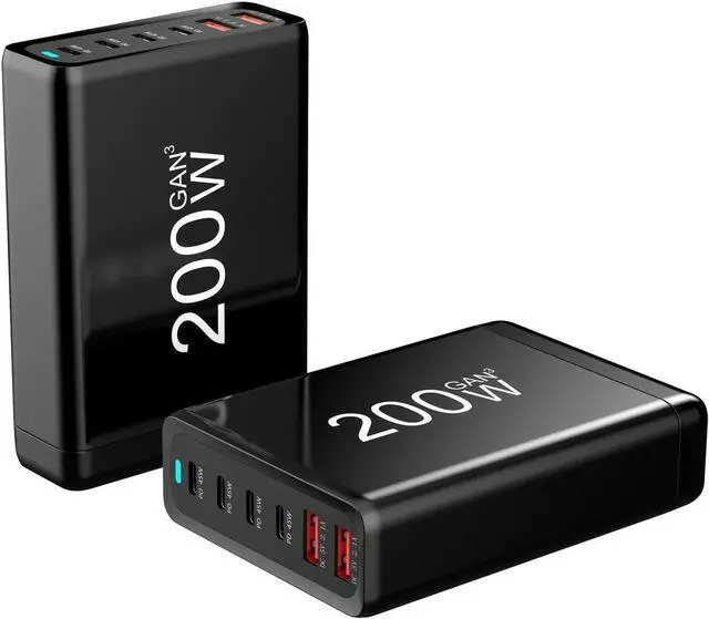 200W Fast Charging Block- 200W charger station comes with 4 USB-C ports and 2 USB-A ports. 45W PD fast charging is especially designed for MacBook Pro / MacBook Air / MacBook. Also supports PD 3.0 20W and QC 3.0 18W fast charging technology, can fast charge for your iPhone 14/13/12 series from 0% to 50% in just 30 minutes, convenient for multiple devices.