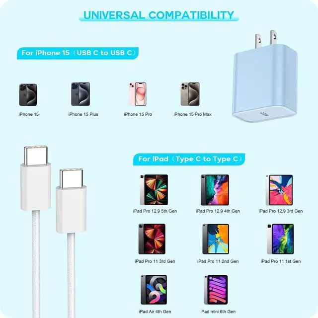 Universal CompatibilityQuick Charge iPhone 16 Pro Max Charger With 6 feet USB C iPhone 16 Charger Cable for iPhone 16/16 Plus/16 Pro/16 Pro Max/iPhone 15/15 Plus/15/15 Pro/15 Pro Max, iPad Mini 6, iPad Pro 12.9 in 5th/ 4th/3rd, iPad Pro 11 in 3rd/2nd/1st,iPad Air 4,Fast Charging.