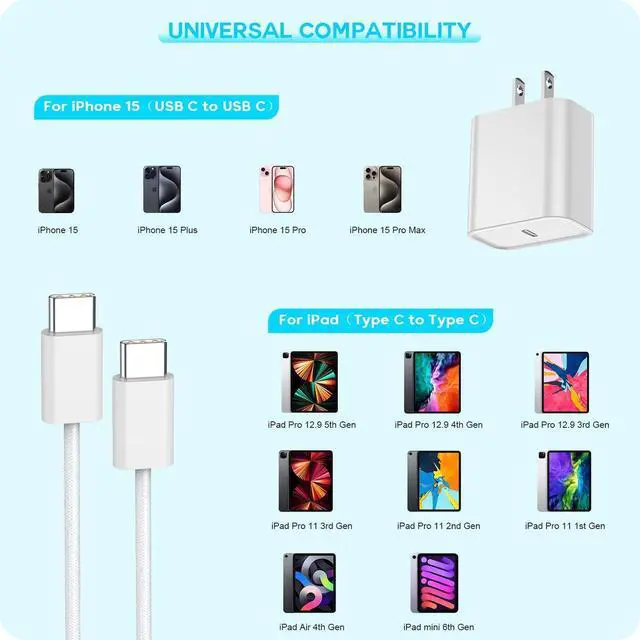 Universal CompatibilityQuick Charge iPhone 16 Pro Max Charger With 6 feet USB C iPhone 16 Charger Cable for iPhone 16/16 Plus/16 Pro/16 Pro Max/iPhone 15/15 Plus/15/15 Pro/15 Pro Max, iPad Mini 6, iPad Pro 12.9 in 5th/ 4th/3rd, iPad Pro 11 in 3rd/2nd/1st,iPad Air 4,Fast Charging.