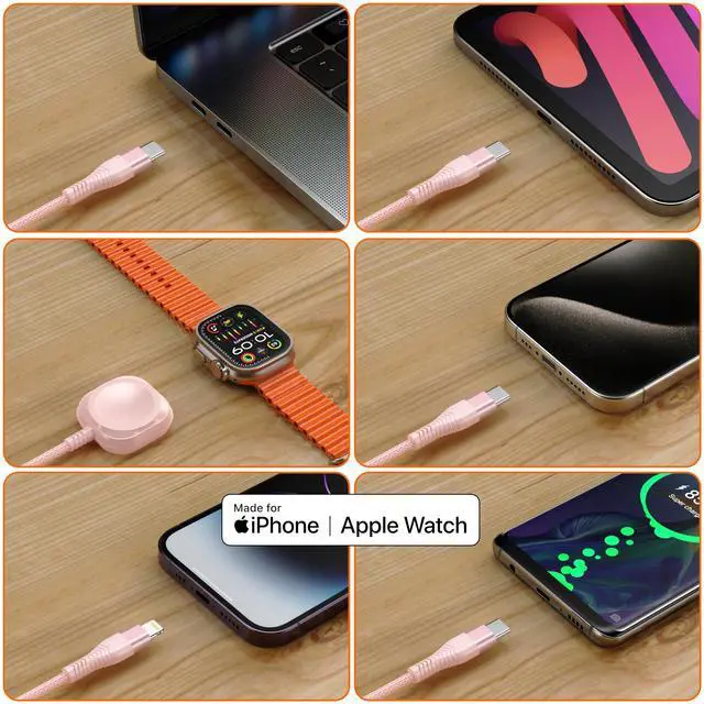 Simplify charging routine with our 3 in one charger, designed to power iPhone and Apple Watch alongside USB-C devicesall with one compact solution. Featuring MFi-certified fast charging, universal charging cable delivers rapid, safe power to your iPhone (lightning cable braided) and Apple Watch charger USB C, eliminating clutter from multiple cords.