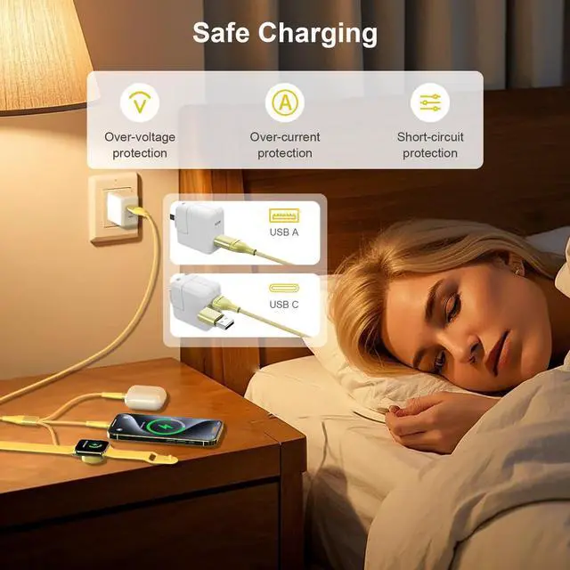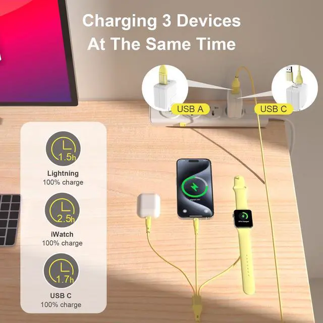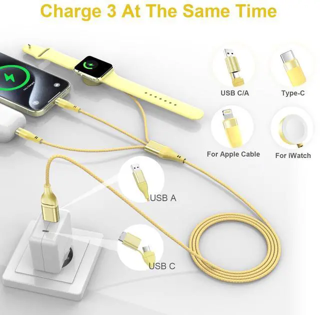 | Special Feature | 3 in 2 Multi Charging Cable for Apple Watch&iPhone&Type c Devices, 48Strands Braided, Safe&Fast Charging, Tangle Free |