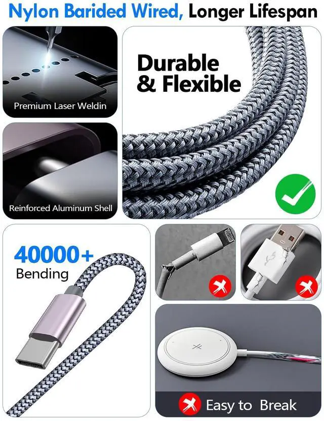 ![Alt view image 5 of 7 - 2Pack Multi Charging Cable Cord for Travel Essentials,Apple Watch Charger,iPhone Charger,[3-in-2] Type C/Lightning Cable Portable Designed for iWatch,iPhone 17-8,Galaxy S25-21,Xbox Series X&S,iPad-4FT](https://c1.neweggimages.com/productimage/nb640/C3H4D25120802HBRZ6F.jpg)