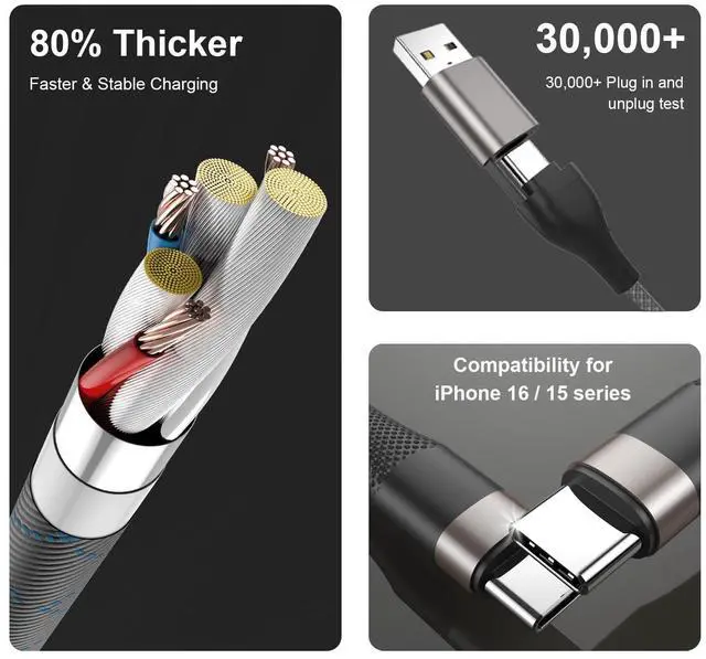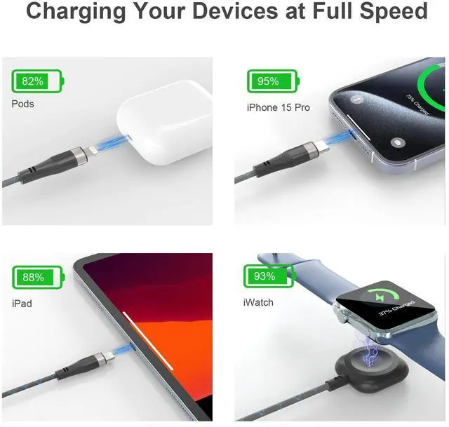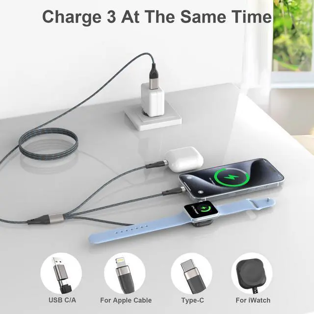 | Special Feature | 48Strands Braided tangle Free, Portable 3 in 2 Multi Charging Cable for Apple Watch&iPhone&Type c Devices, Safe&fast Charging |