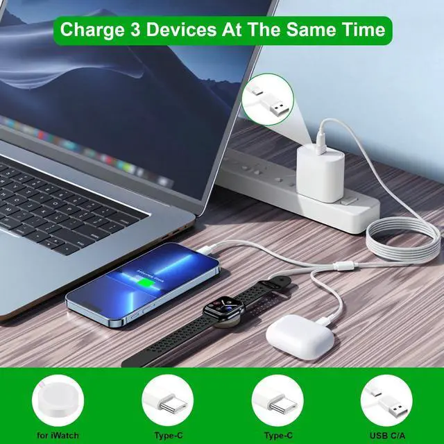 Introducing the All in One Charger for Apple Devices, thoughtfully designed to provide reliable and efficient charging for all your gadgets. Built for everyday use, this cable is made to deliver consistent power while ensuring your devices are safe during each charge. Compatible with Apple Watch Ultra 2/Ultra/10/9/8/7/6/SE 2/SE/5/4/3/2/1, iPhone 16 Pro/Pro Max/Plus, iPhone 15, iPad Pro/Air/mini, AirPods 4/Pro 2/Pro/Max, Galaxy S24/S23/S22/S21, Android Devices, Headphones, Power banks, and more, this multicharger charger cord ensures you can power up everything you need with ease.