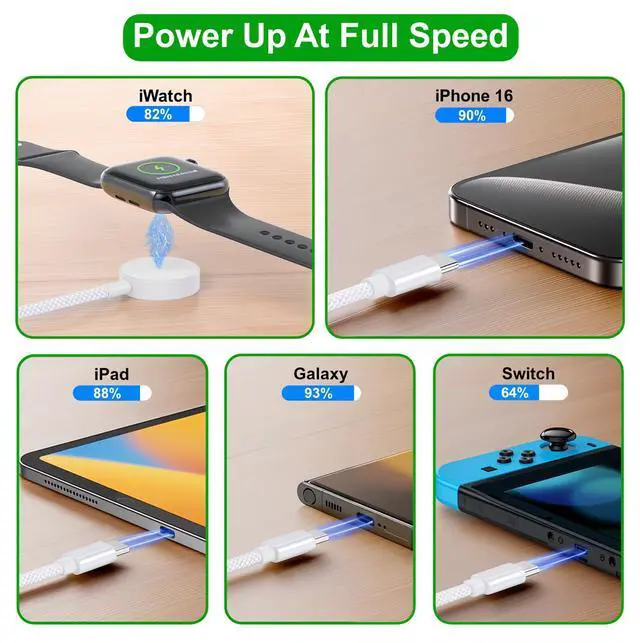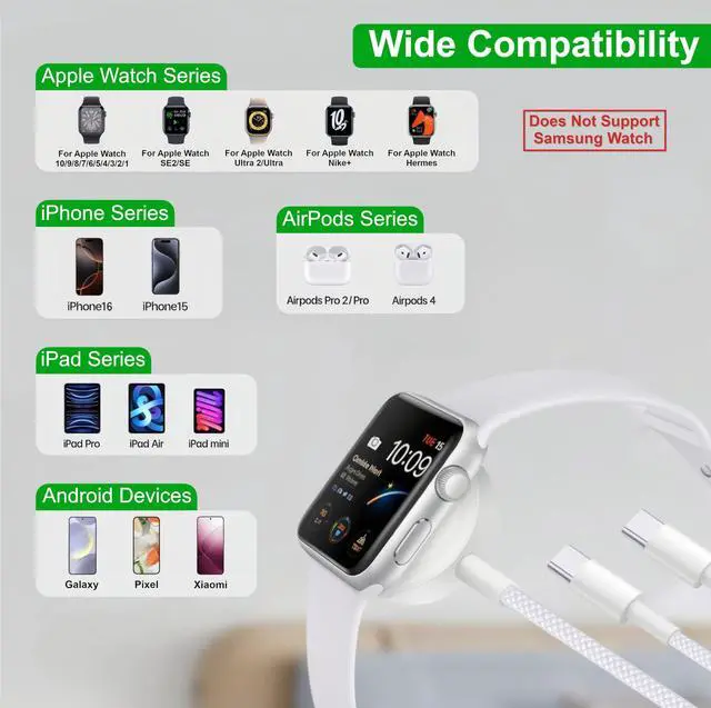 Upgraded 3-in-2 for Apple Watch charger cable USB C | Designed for Long-Lasting Performance and Safety