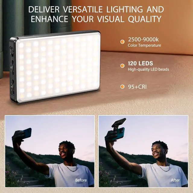 The SEAEYES LED Video Light is a versatile lighting solution for photographers, vloggers, and content creators who require high-quality lighting in a compact, portable package. With a fully adjustable color temperature range from 2500K to 9000K, this light adapts to any shooting scenario, from warm indoor lighting to crisp outdoor environments. The high CRI of 95+ guarantees that your subjects are illuminated in accurate, vibrant colors, ensuring professional-level quality for both photos and videos. Equipped with a powerful 5000mAh battery, this light allows for extended shooting sessions without the need for constant recharging or external power. The light features 120 high-efficiency LED beads that produce bright, even illumination, perfect for reducing shadows and glare. Whether youre shooting a YouTube video, live-streaming, or capturing the perfect portrait, this light ensures consistent results. The SEAEYES LED light is designed with flexibility in mind. The included tripod and clip make it easy to set up with a wide variety of devices such as smartphones, laptops, tablets, and cameras. Its lightweight, portable build makes it an essential accessory for creators who are constantly on the move. Whether you are indoors or outdoors, the SEAEYES LED Video Light provides the reliable, high-quality lighting you need to elevate your content.