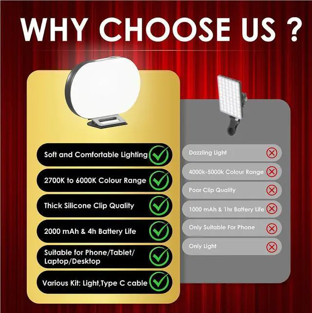 - Portable and Professional Lighting Anywhere: Lightweight and travel-friendly, this clip on light for phone is ideal for TikTok, Zoom calls, video conferences, vlogs, and selfies. Advanced LED technology ensures smooth, even lighting thats gentle on the eyes, delivering perfect results every time.