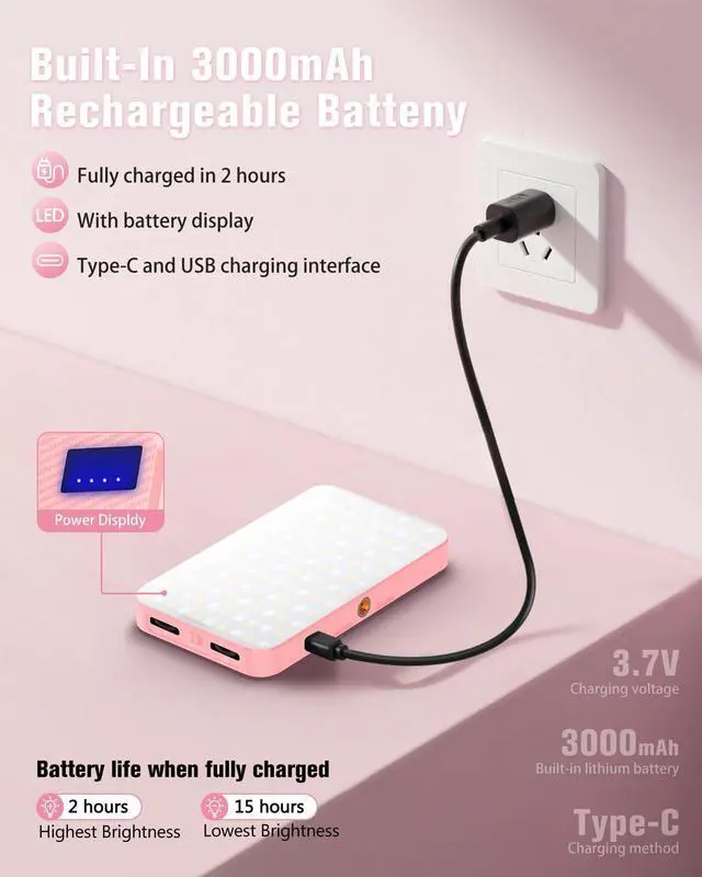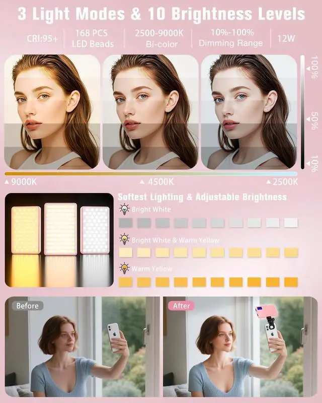 168 LED Phone Light, Selfie Light for iPhone/Phone/iPad/Camera, 3000Mah Rechargeable Portable Lights, 3 Lighting Adjustment Modes, Selfie Lights for Photography/TikTok/Vlog/Video selfie light