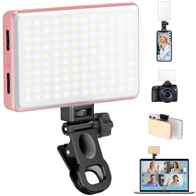168 LED Portable Selfie Light Video Conference Lighting with Clip & Camera Tripod Adapter Rechargeable 3000mAh CRI 95+, 3 Light Modes for Phone iPhone Webcam Laptop Photo Makeup