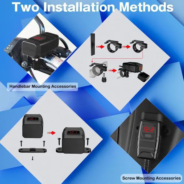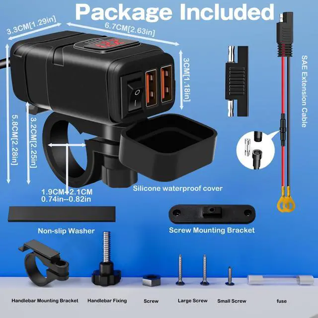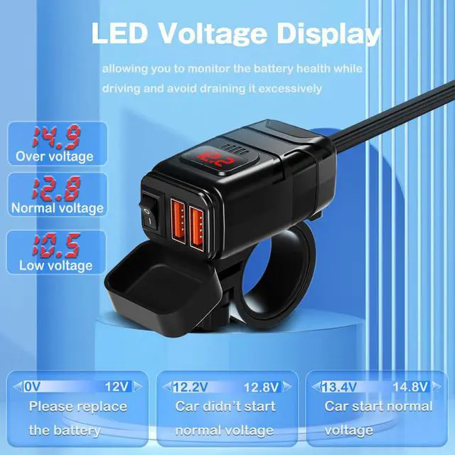 A motorcycle USB charger with an attached voltage meter offers several benefits: - Battery Monitoring - The built-in voltmeter allows you to monitor your motorcycle's battery voltage at a glance. This helps you keep track of the battery's condition and charge level, preventing unexpected failures or starting issues. -Convenience - Having a voltage meter integrated into the USB charger eliminates the need for a separate voltmeter, saving space and providing a convenient all-in-one solution for monitoring your motorcycle's electrical system and charging devices simultaneously.
