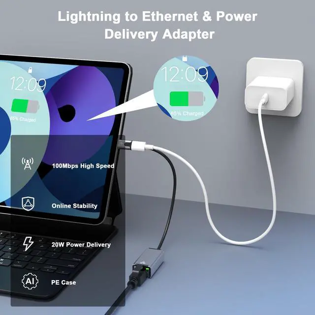 Universal Compatibility: lightning to RJ45 ethernet adapter is compatible with all Lightning interface iPhones and iPads, such as iPhone 14 13 12 11 Pro Max XS XR X 8 7 6 5, iPad Air/mini/Pro, etc.