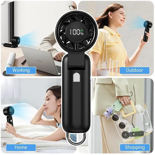 Stay Cool Anywhere with the Ultimate 4-in-1 Handheld Turbo Fan! Powerful & Versatile Cooling Experience instant relief from the heat with our 4-in-1 handheld turbo fan, combining high-speed airflow, 180° adjustable head, 6-speed precision control, and a clear LED display in one compact device. Whether you're at home, in the office, or exploring the outdoors, this fan delivers customizable cooling exactly how you need it. 180° Foldable & Space-Saving Design The fully adjustable fan head rotates 180° for targeted airflow, while the foldable body makes it easy to pack in your bag, suitcase, or even a small drawer. Perfect for travelers, campers, students, and professionals who need a portable cooling solution. 6-Speed Adjustable Turbo Wind (1-100 Levels) Choose your ideal breeze with 6 customizable speed settings, from a gentle whisper (Level 1) to a powerful turbo blast (Level 100). The built-in LED display lets you monitor speed and battery life at a glance. Long-Lasting 5000mAh Rechargeable Battery Enjoy up to 15 hours of continuous cooling on a single charge (varies by speed). The USB-C rechargeable design means no more wasting money on disposable batteriesjust plug into any power bank, laptop, or wall adapter for quick refueling. Perfect for Indoor & Outdoor Use Travel Essential Fits in carry-on bags, ideal for flights, road trips, and hotels. Outdoor Adventures Great for camping, hiking, beach days, and festivals. Home & Office Quiet operation for desks, bedrooms, or baby strollers. Gym & Sports Stay cool during workouts or outdoor sports. The Ultimate Gift for Hot Days! Looking for a practical summer gift? This rechargeable handheld fan is perfect for men, women, kids, and seniors who need a portable way to beat the heat.