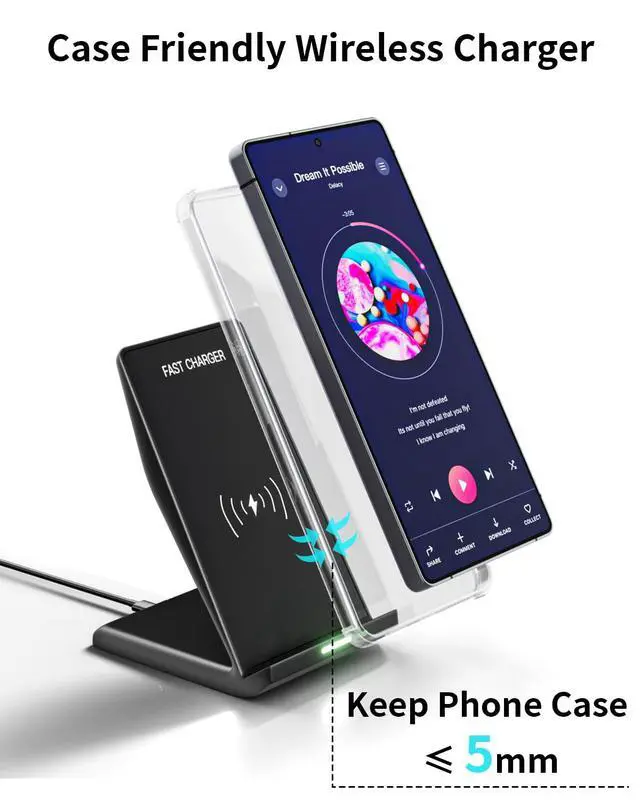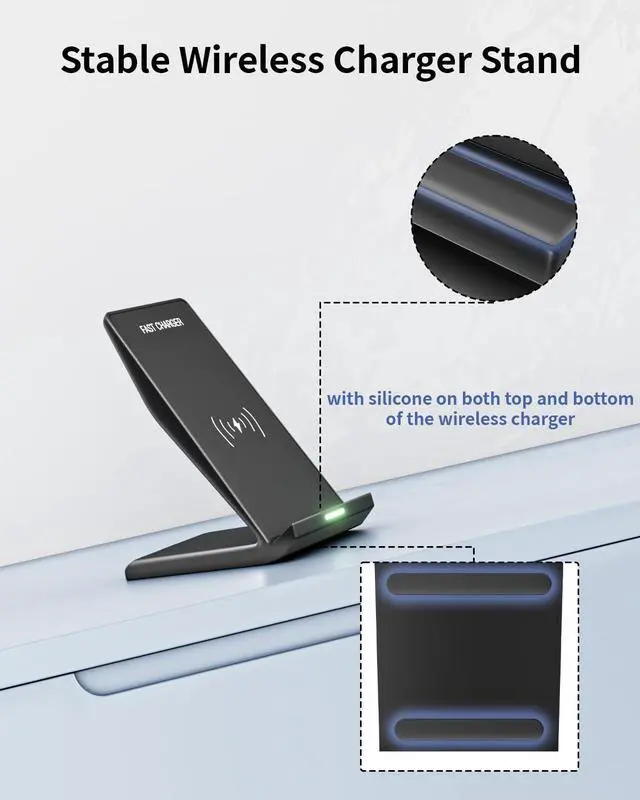 with anti-slip rubber strips keep this wireless charger Samsung fixed on the desk, will not slip easily.