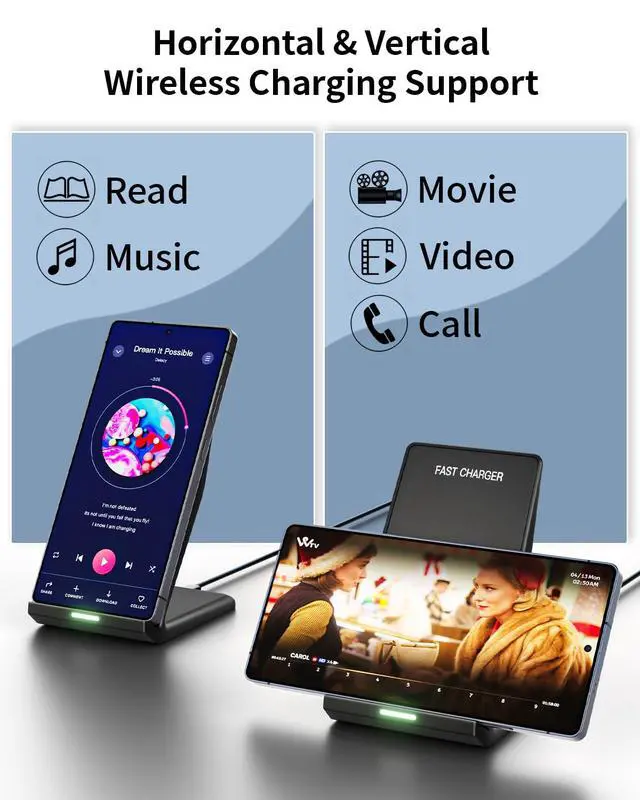 the fast charging wireless stand can support horizontal and vertical position charging.