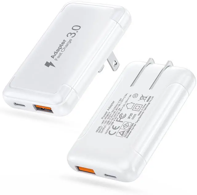 Ultra-Slim and Foldable Plug Design: Our 50W dual port usb c wall charger is very slim. Perfect for any wall outlet that fits on the back of sofa, bed and other furniture, not taking up space. This 2-in-1 compact charger features a folding design that is different from traditional chargers.90° foldable plug charger is easy to carry,easy to fit in your pocket or backpack, convenient for travel. Travel-friendly design provide maximum portability wherever you go.
