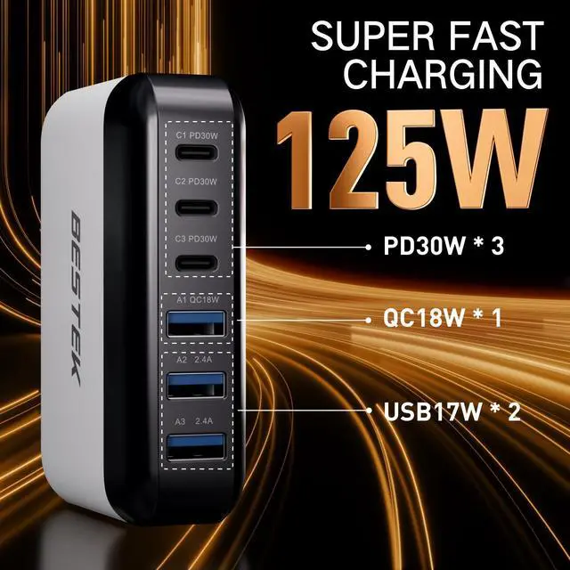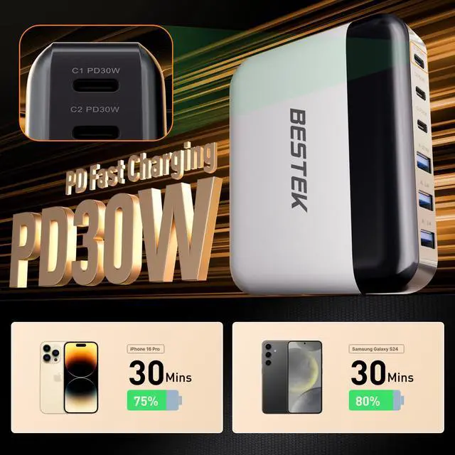 | 3 PD30W USB-C ports+1QC18W | 12V(PD36W)/24V(PD65W) | 12V(PD36W)/24V(PD65W) | 12V(PD36W)/24V(PD65W) | Total 2.4A |