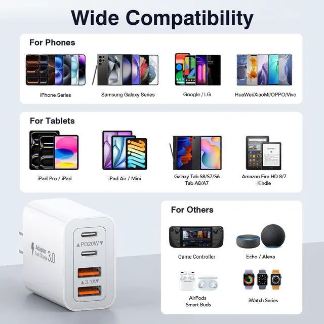 | Other Accessories | Wireless Chargers, Wireless Earbuds, Smartwatch, Switch and more USB C devices |