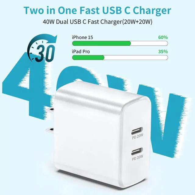 40W Dual USB C iPhone 15 16 Fast Charger