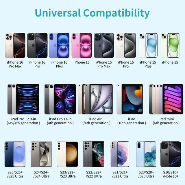 Compatible with Samsung Galaxy S25 Ultra/S25+/S25/S24 Ultra/S24/S24+/S23 Ultra/ S23+/S23/S22 Ultra/ S22/ S21 Ultra/ S21/ S21 Fe/ S20/ S20 Fe/ S10/ S10+/ S9/ S9+/ S8/ S8+/ Note 20 Ultra 5G/ Note 20/ Note 10/ Note 10+/ Note 9/ Note 8, A20/ A10e/ A51/ A50/ A7/ A71/ A80