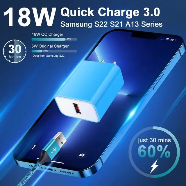 18W Fast Android Phone Charger, 3A Rapid Samsung Galaxy A53 5G Charger Plug, Samsung galaxy s23 s22 charging cord 6ft