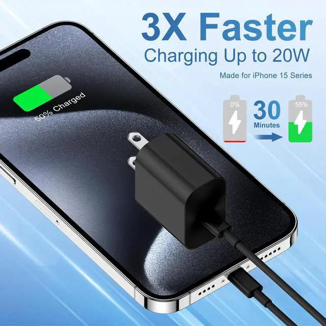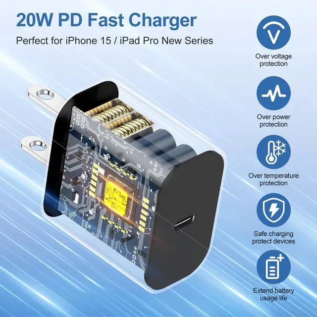 20W Charging Adapter Set : A 20W wall charging plug equipped with a 60W fast charging cable can hel you charge at high speed and improve efficiency. The USB C cable has automatic chip recognition function. Ensure 100% perfect compatibility with Apple 15 series devices. There are no longer triggering warning messages.