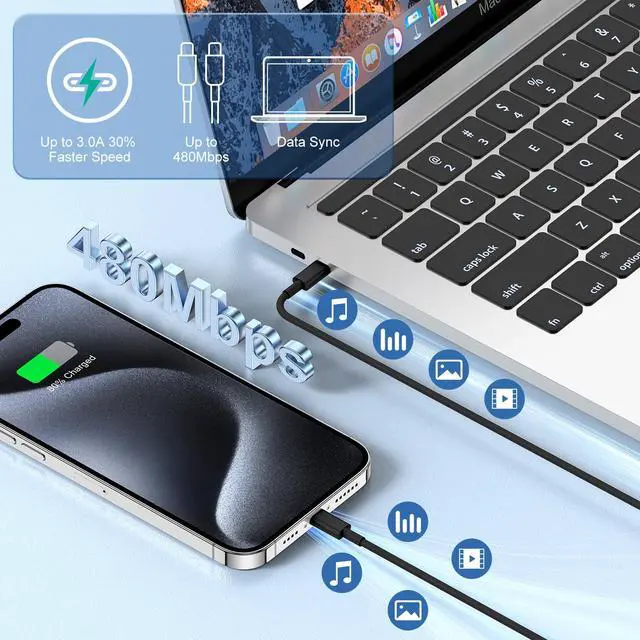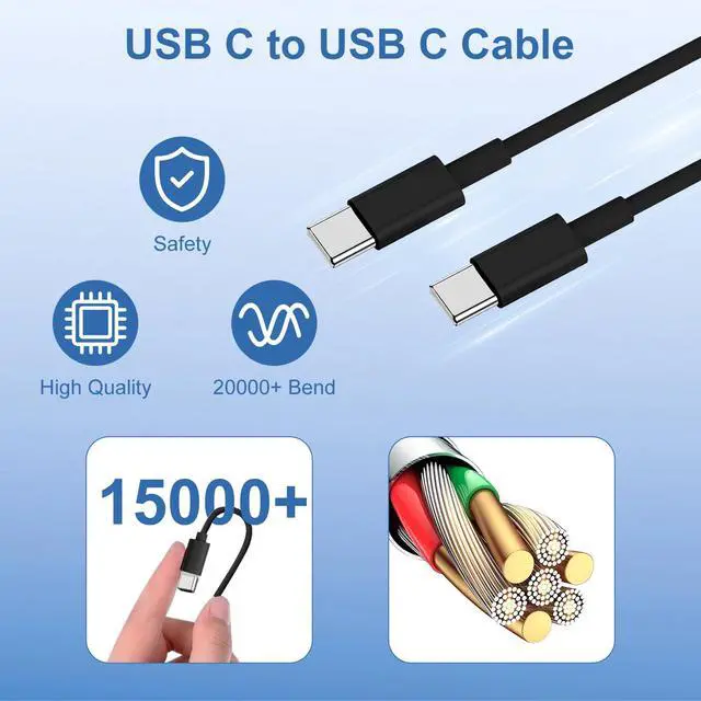 60W C-type Fast Charging Cable : The 60W 10FT C-type to C-type charging cable has a long charging distance and fast charging, making it convenient for you to charge remotely in the bedroom, living room, or office. It also has data transmission function, making it easy to use, with a data transmission speed of up to 480 Mbps.