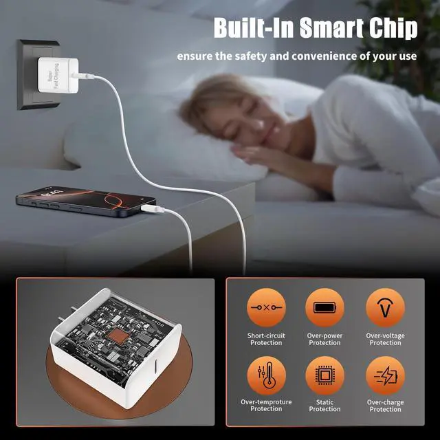 Safety Efficient Fast ChargingFor Our USB C for iPhone 17 16 charger fast charging prioritizes safety with its comprehensive protection system, guarding against over-voltage, over-charge, and over-heating. Equipped with advanced smart chips, it intelligently adjusts the current to match your device's needs, guaranteeing a rapid and secure charging process for iPhone 17/16/15 series.