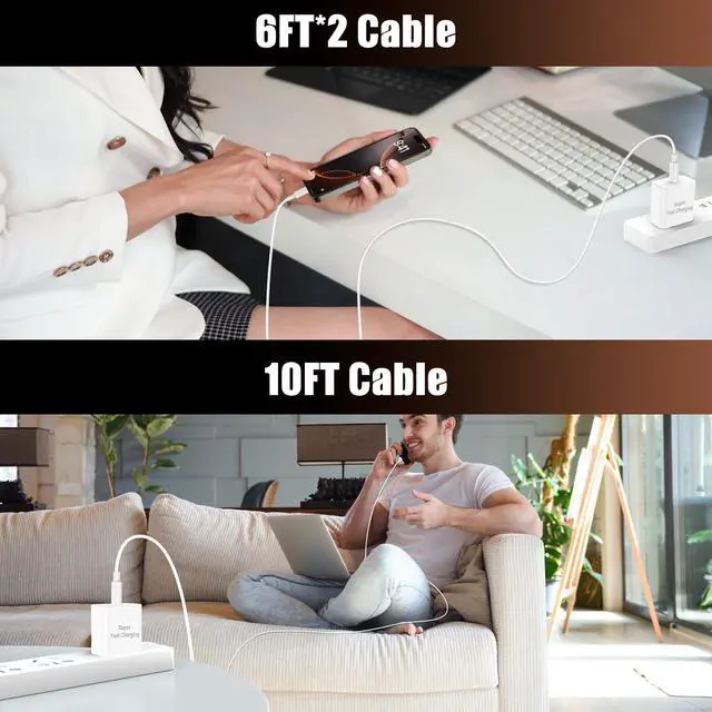 100W/5A 6F 10Ft USB C for iPhone 17 16 Charger Cable CordFor iPhone 17 16 Pro Max Charger with 10 ft Long type c to c charging cable cord supports PD 3.0 fast charging speed max up to 20V/5A (100W), The cable's reversible design allows for effortless plug-in, while enabling efficient 480Mbps data syncing. And the 10 foot (3meter) for iPhone 17 16 charging cable length allows you charge your iPhone and iPad models from long distance, make your life more easier and convenient.