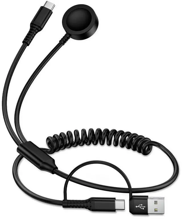 The charger cable has a built-in 2* USB-C port, 1* Samsung Watch Charger Dock and a USB-A to USB-C adapter,