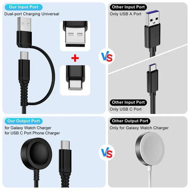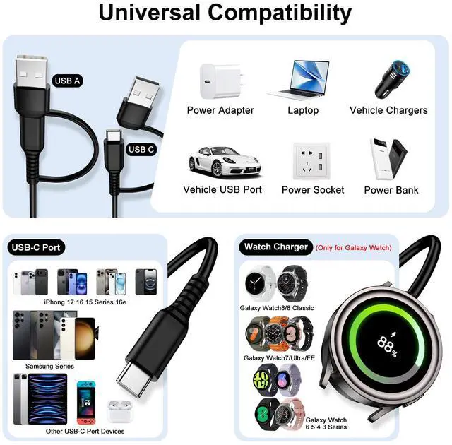 making samsung galaxy watch charger and phone charger compatible with almost all power devices in everyday life.