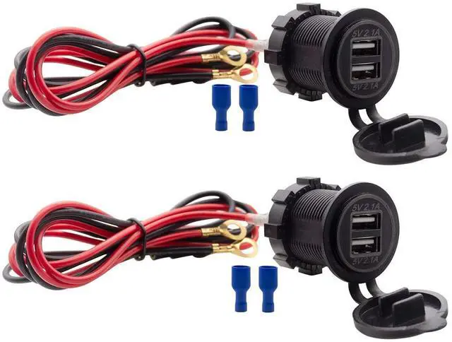 - 2x 12/24V Dual USB Socket Mount Car Charger Adapter & 2.1A+2.1A