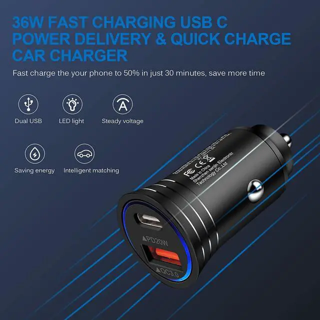 • [Dual Port Charger for Car Cigarette Lighter] - With PD3.0 USB-C & QC3.0 USB-A charging ports, this iPhone 15 car charger can fast charging iPhone and Samsung or other prevailing android phones simultaneously at full speed. Offer high-speed charge to both you and your lover, family or friends. Type C PD Port covering all prevailing fast charging mode, provides a blazing-fast charge to USB-C devices, 75% faster than conventional cigarette lighter usb charger.