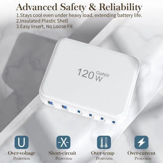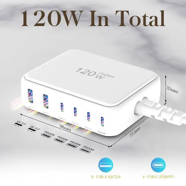 Yes. Our charger's 120W total output is authentic. It features six independent circuits—each fast charging port can deliver its max power without interference. Think of it like six apartments sharing a 120W power grid, each with its own meter. Devices don’t always draw max power. Charging speed adjusts intelligently based on battery level and usage. For example, a equipment may use only 10W when near full charge to protect the battery. This ensures both efficiency and safety. Actual power delivery also depends on cable quality.