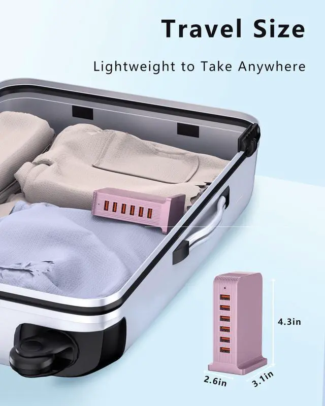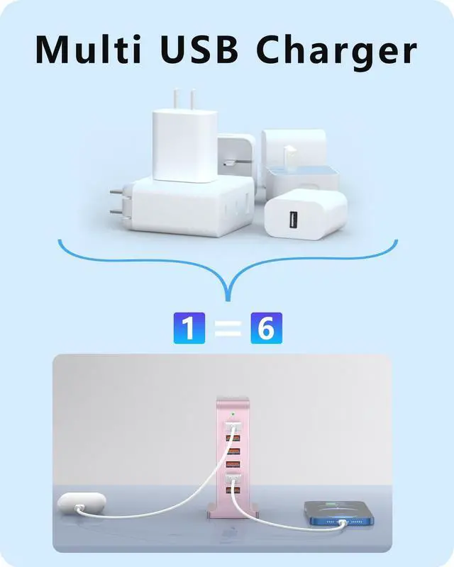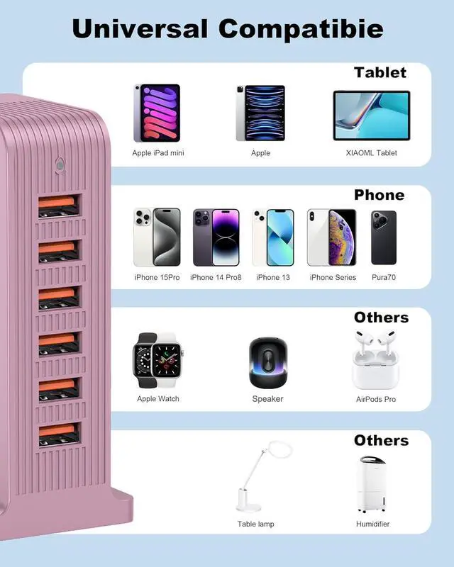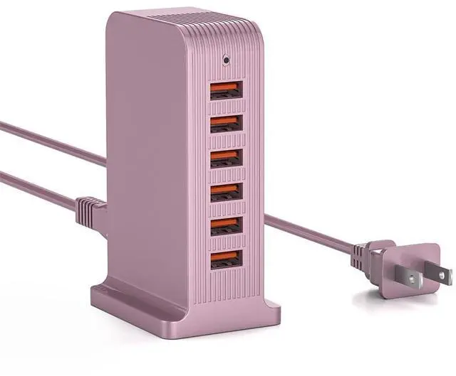VPSUN Charging Station for Multiple Devices,VPSUN 50W USB Charger Tower,Multi 6 Port USB Charging Hub Compatible with iPhone 15/14/14 Pro/14 Pro Max/Android/Samsung/Tablet,etc(Pink, 50W)