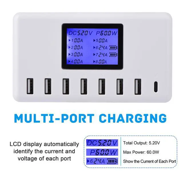 With 60W 8 Ports plus extra Type C port to choose from, this slitinto USB Charger Station can power all types of devices and sufficiently offer enough ports to charge all your devices at once.