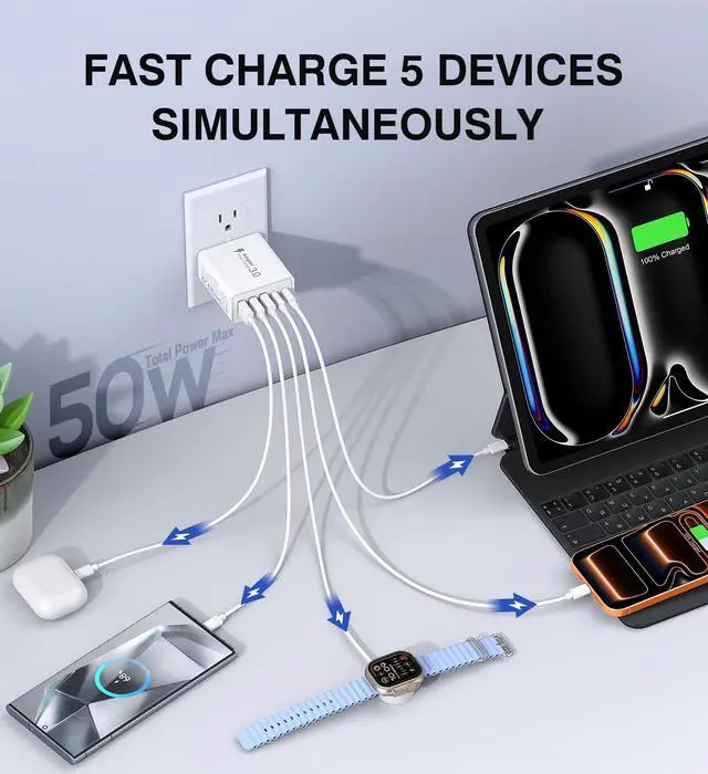 ![Main image of [2-Pack] USB C Wall Charger,50W 5-Port PD Fast USB C Charging Block,2USB C+3USB A Multiport Plug,Type C Power Adapter Brick Cube for iPhone 17/16/15/14/13/12/Pro Max/XS,iPad,for Switch,Samsung,Ultra 2](https://c1.neweggimages.com/productimage/nb640/C5JMD2603050B8LZHCC.jpg)