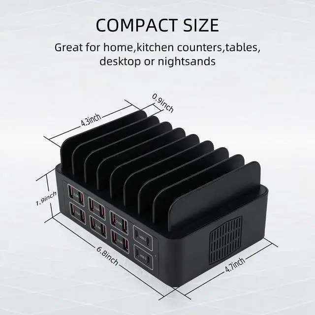 16-Port USB Desktop Charging Station(USB-A & USB-C)