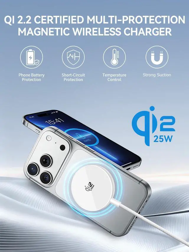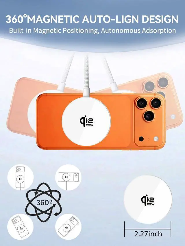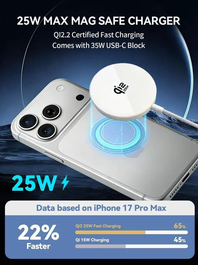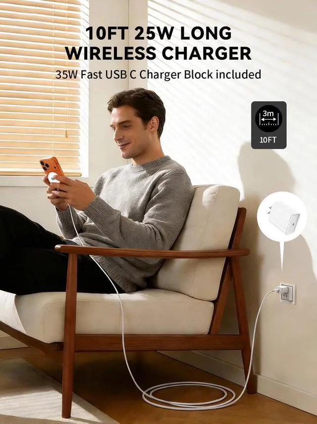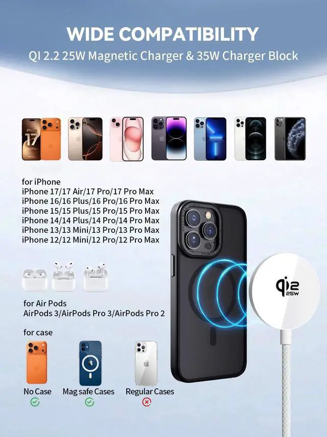25W Mag Safe Charger 10FT,Qi2.2 Qi2 iPhone 16 Magnetic Wireless Fast Charger Wireless Mag Safe Fast Charging Pad with 35W USB C Brick Block for iPhone Air 17 16 15 14 13 12Pro Max Plus,AirPods Pro 2/3