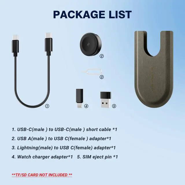 All-in-One Charging & Connectivity Solution: The BASNLIFE multi USB adapter kit combines a 60W USB C to USB C fast charging cable, a wireless charger for Apple Watch, USB A, Lightning, and Type-C adapters, plus built-in SIM/micro SD card slots and an ejector tool. Say goodbye to carrying multiple cablesthis 7-in-1 OTG adapter meets all your charging and data transfer needs.