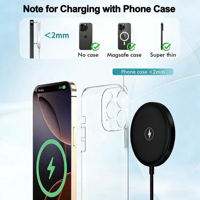 For a better charging experience, please use Magsafe phone cases or Without use phone cases.