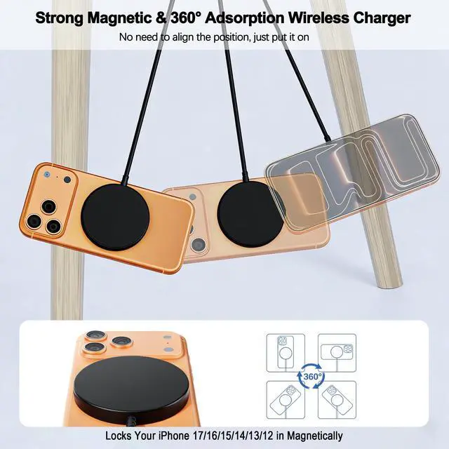 ![Alt view image 5 of 7 - [Apple MFi Certified] iPhone Magnetic Wireless Charger 15W 6FT Mag-Safe Charging Pad with USB C Fast Wall Charger Block for iPhone 17 Pro Max/Air/16E/16 Plus/15/14/13/12/11/AirPods Pro 3/2(Black)](https://c1.neweggimages.com/productimage/nb640/C67GD2604220YM5XP92.jpg)