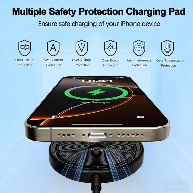 ![Alt view image 6 of 7 - [Apple MFi Certified] iPhone Magnetic Wireless Charger 15W 6FT Mag-Safe Charging Pad with USB C Fast Wall Charger Block for iPhone 17 Pro Max/Air/16E/16 Plus/15/14/13/12/11/AirPods Pro 3/2(Black)](https://c1.neweggimages.com/productimage/nb640/C67GD2604220YM5Z546.jpg)