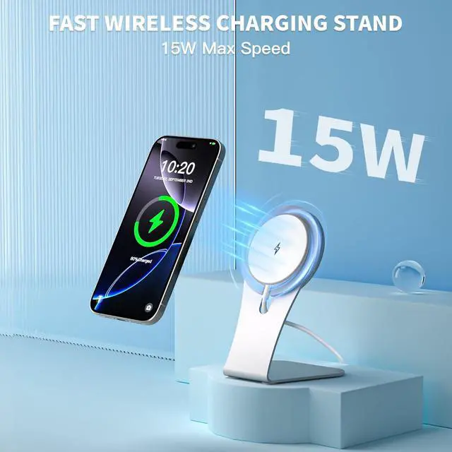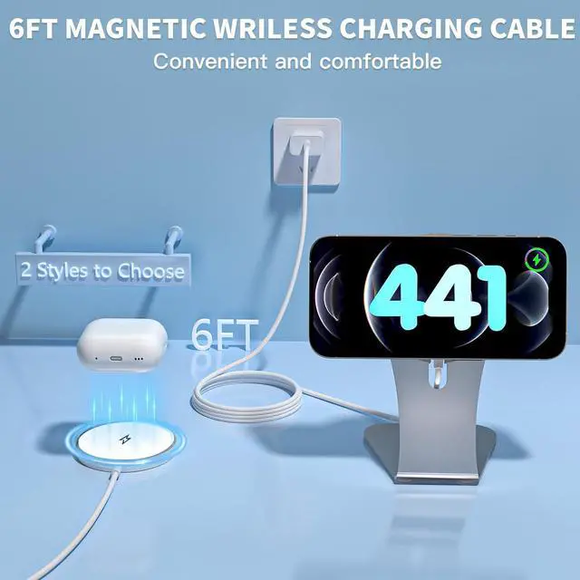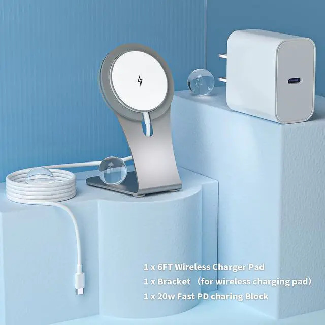 USB C Fast iPhone Charger Block with15W Max Apple Mag-Safe Charging Pad Stand(silvery)