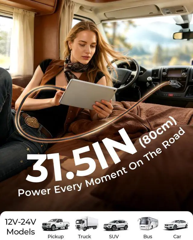 Wide Compatibility: This car charger works with both 12V and 24V vehicles, including cars, SUVs, pickups, trucks and buses. It is also ideal for office workers with Apple and Android devices, parents with children, and frequent travelers who often forget their cables. Additionally, the 180° adjustable charger fits snugly into the cigarette lighter socket without wobbling.