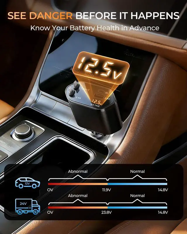 LED Voltage Display: Real-time voltage detection helps monitor car battery health, and the soft LED light wont distract you while driving at night.