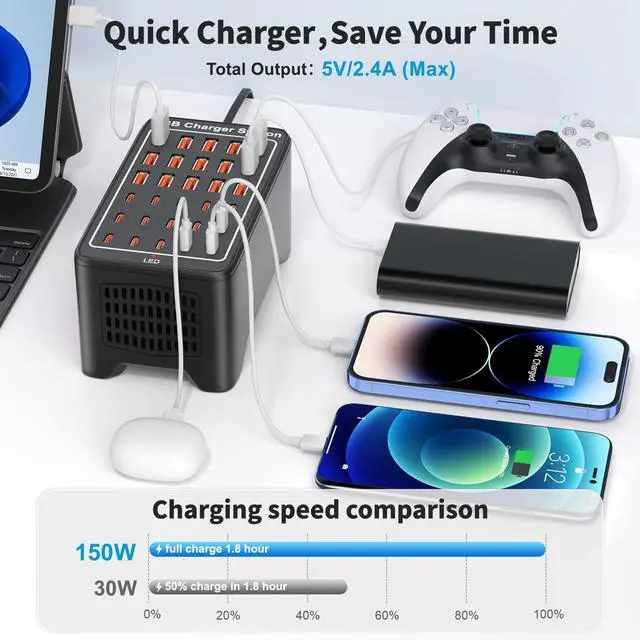 More and more cell phones no longer come with chargers, so our fast charging station is the perfect choice for quick charging of multiple devices!