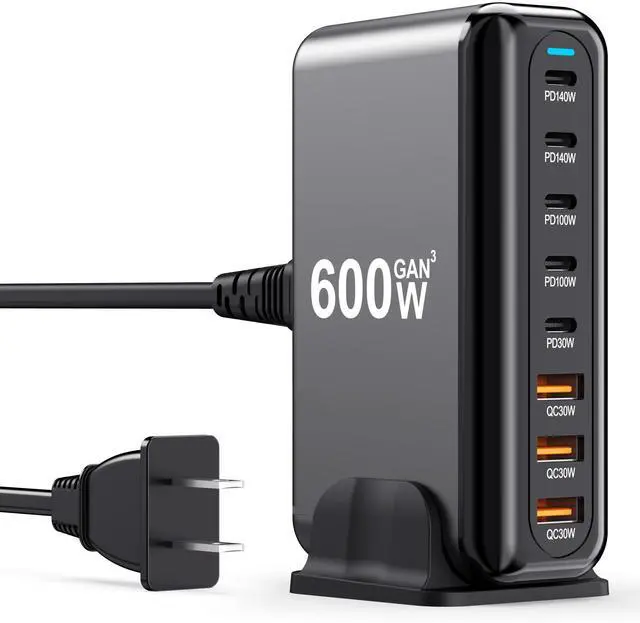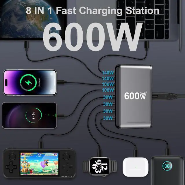 USB C Charger Block 600W 8 Port GaN Fast Charging Station Hub for Laptop, iPad, iPhone 17 Pro Max Fast Charger Pixel DELL MacBook Pro/Air Galaxy S25 Steam Deck USB C 140W Adapter for Android