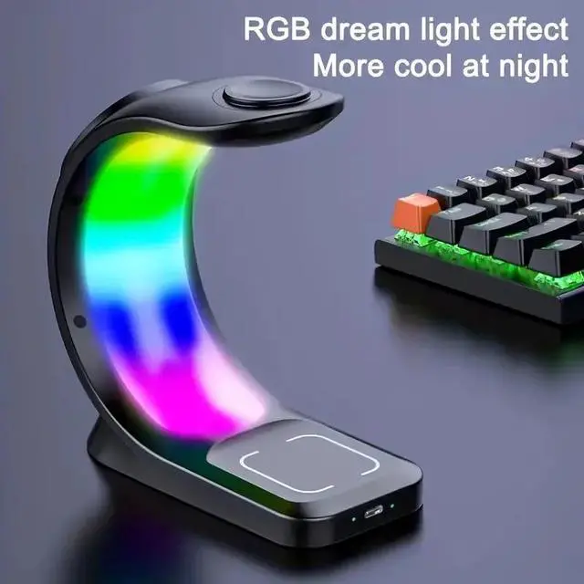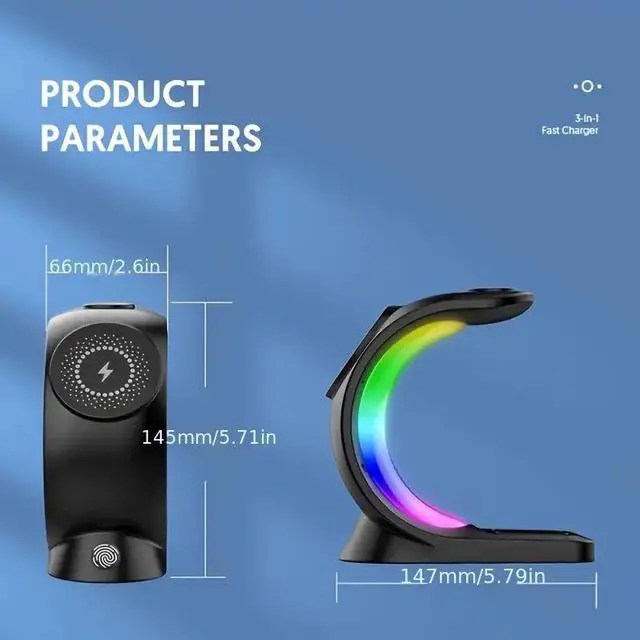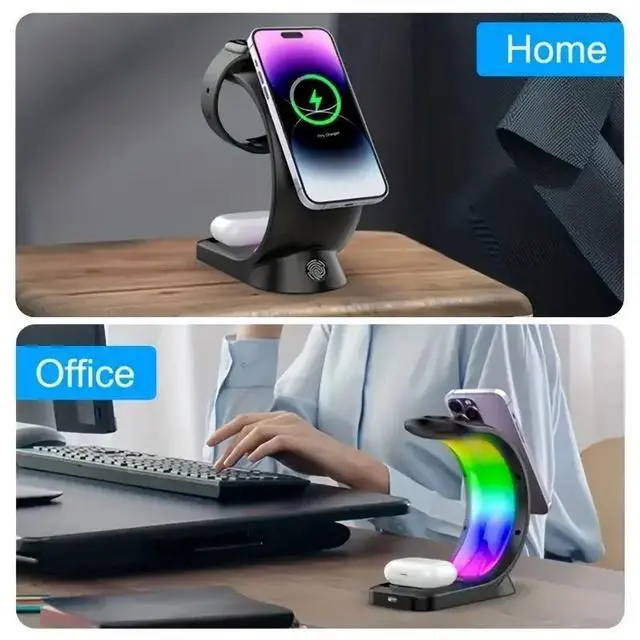 Declutter your desk with this 3-in-1 Wireless Charger. Featuring MagSafe magnetic alignment, fast charging for iPhone, Apple Watch, and AirPods, RGB lighting, and touch controls, it's the perfect charging station for Apple users.