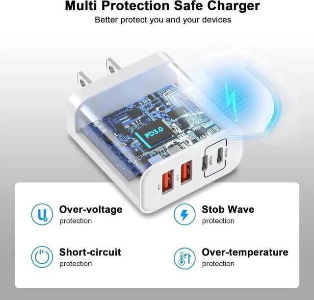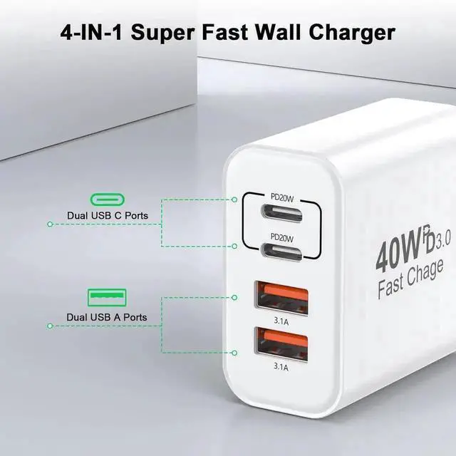 ![Alt view image 7 of 7 - USB C Charger Block, [2 Pack] 40W 4 Ports Type C Charger Fast Charging Cubes PD+QC 3.0 Power Adapter Multiport Brick Type C Box Compatible for iPhone 16/15/14/13/12/11 Pro Max, Android Phones](https://c1.neweggimages.com/productimage/nb640/C1E6S251012036R603C.jpg)